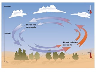 El documento describe los principales componentes del sistema Tierra y cómo interactúan entre sí. Explica que la Tierra recibe energía del Sol, y que la atmósfera, geosfera e hidrosfera interactúan creando los procesos meteorológicos que determinan el clima. También describe la estructura interna de la Tierra y del Sol, así como los movimientos de rotación y traslación de la Tierra que influyen en las variaciones climáticas.