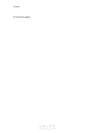 La Tierra gira sobre su eje cada 24 horas en un movimiento de rotación y orbita alrededor del Sol cada año en un movimiento de traslación. Es el tercer planeta desde el Sol y el único conocido que alberga vida. El documento explica estos dos movimientos de la Tierra y fue obtenido de una revista sobre la Tierra y sus movimientos.
