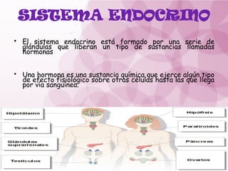 El documento aborda las alteraciones del sistema endocrino, centrándose en el hipotálamo, la hipófisis y la tiroides. Se describen diversas enfermedades y condiciones relacionadas, como el craneofaringioma, diabetes insípida, hipoprolactinemia, hipotiroidismo y cáncer de tiroides, junto con sus síntomas, diagnóstico y tratamiento. Además, se presentan aspectos anatómicos y fisiológicos de las glándulas mencionadas.