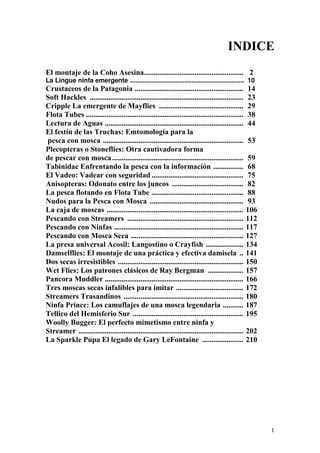 Este documento describe la mosca Coho Asesina, un patrón efectivo para pescar salmones coho. Existen dos modelos de esta mosca, con o sin lastre, dependiendo del ambiente de pesca. La combinación de pelo rojo, cuerpo morado y pelo blanco resulta atractiva para los salmones. El documento también discute la autoridad de Don Pancho Rosas en la pesca de salmón y la introducción de salmones en las aguas de Chile con fines industriales.