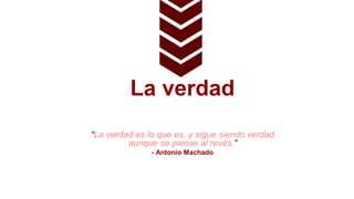 La verdad es un concepto fundamental en la lógica, definida como la correspondencia entre las declaraciones y la realidad. Se discuten diversas posturas sobre la verdad, como el relativismo, que es difícil de defender ya que sugiere que no hay verdad objetiva. Además, se describen distintos tipos de declaraciones y verdades, incluyendo afirmaciones analíticas, empíricas y de valor.