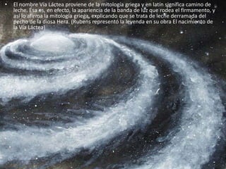 • El nombre Vía Láctea proviene de la mitología griega y en latín significa camino de