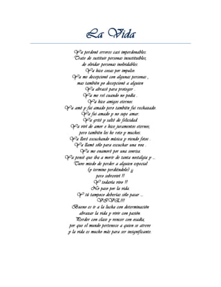 Este poema reflexiona sobre las experiencias de vida del autor, incluyendo amores y desamores, alegrías y tristezas, éxitos y fracasos. A pesar de los errores del pasado y las pérdidas sufridas, el autor sobrevivió y continúa viviendo con pasión, determinación y osadía. En última instancia, anima al lector a no pasar por la vida, sino a vivirla plenamente.