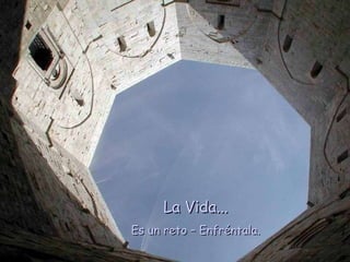 El documento presenta una serie de reflexiones sobre la vida, describiéndola como un reto, un proceso de dejar ir para poder agarrar algo nuevo, amor que debe vivirse profundamente, esperanza que debe mantenerse, un camino que debe seguirse hacia adelante, una oportunidad para creer y aprender, un regalo por el que sentir gratitud, una amistad que debe cuidarse, algo hermoso si se abren los ojos, una verdad que no debe traicionarse, algo emocionante si se mantiene la curiosidad, y un viaje con una meta hacia