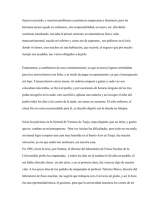 La autora creció en una familia de bajos recursos después de que su padre los abandonó cuando ella tenía 5 años. Su madre asumió la responsabilidad de criar a sus 3 hijos y les enseñó a trabajar desde una edad temprana. La autora terminó el bachillerato y estudió física y matemáticas en la universidad, trabajando los fines de semana para pagar sus gastos. Más tarde, abrió un negocio de venta de empanadas que la ayudó a financiar sus estudios y los de su hermano. Finalmente