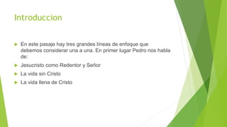 Este pasaje contrasta la vida sin Cristo y la vida llena de Cristo. La vida sin Cristo es una vida de ignorancia, dominada por los deseos y caracterizada por la inutilidad. La vida llena de Cristo es una de obediencia, reverencia hacia Dios y amor fraternal, ya que Cristo es el Redentor que nos liberó a través de su muerte y resurrección.