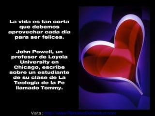 Tommy era un estudiante ateo en la clase de Teología de la Fe de John Powell. Cuando Tommy fue diagnosticado con cáncer terminal, buscó a Dios desesperadamente pero no lo encontró. En cambio, decidió pasar el tiempo que le quedaba expresando su amor a su familia. Al hacerlo, se dio cuenta de que había encontrado a Dios a través de sus seres queridos. Antes de morir, Tommy visitó a Powell para contarle sobre su experiencia y pedirle que compartiera su historia con otros.