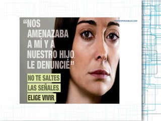 Este documento trata sobre la violencia de género. Define la violencia de género como un tipo de violencia física o psicológica ejercida por un sexo hacia el otro que impacta negativamente el bienestar social, y que habitualmente es dirigida hacia las mujeres. Entre 2003 y 2013, 712 mujeres fueron asesinadas en sus casas debido a la violencia de género. También señala que las denuncias de las mujeres son importantes para reducir la violencia de género y que deberían acudir a la policía o