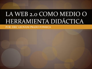 Este documento describe los elementos característicos de la Web 2.0 y su potencial como herramienta didáctica en la educación superior. Explica las diferencias entre la Web 1.0 y la Web 2.0, identificando elementos como la interactividad, la participación de los usuarios y el trabajo colaborativo como características clave de la Web 2.0. También presenta diversas herramientas de la Web 2.0 y analiza su posible aplicación en la docencia universitaria a través de métodos centrados en la comunicación, los medios educativos y