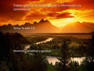 El documento resume las principales características de la Web 2.0, incluyendo sitios que permiten compartir información y colaboración entre usuarios como wikis, blogs y redes sociales. Explica que la Web 2.0 se refiere a cambios en cómo los desarrolladores y usuarios usan la web más que una actualización técnica.
