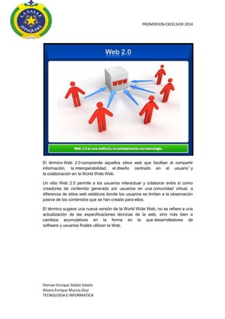 El documento describe la evolución de la Web hacia la Web 2.0, la cual permite una mayor interacción entre usuarios, colaboración y generación de contenido. También discute el debate en torno al término "Web 2.0" y su significado, señalando que surgió en 2004 pero que la transición hacia una web más social y participativa venía ocurriendo desde antes. Finalmente, analiza algunas implicaciones educativas de la Web 2.0 como nuevas formas de aprendizaje colaborativo y creación de conocimiento.