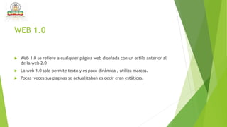 La Web 1.0 solo permitía texto estático y poco dinámico, mientras que la Web 2.0 facilitó el compartir información y la interacción entre usuarios a través de blogs, wikis y redes sociales. La Web 3.0 propone el uso de inteligencia artificial para hacer que los contenidos sean accesibles a través de múltiples aplicaciones y promover tecnologías como la web semántica.