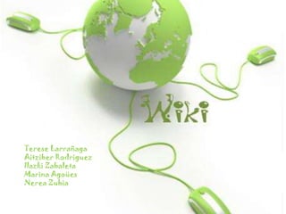 Los wikis son sitios web colaborativos que pueden ser editados por múltiples usuarios para crear páginas de forma rápida y eficaz. Ofrecen gran libertad a los usuarios para incluir textos, hipertextos, documentos, enlaces y más. Los wikis tienen características como espacio ilimitado, páginas públicas o privadas, y permiten la publicación inmediata y discusión. Pueden usarse para elaborar glosarios, antologías de textos y permitir la colaboración entre alumnos y profesores