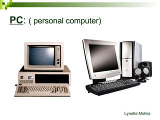 El documento describe los componentes principales de una computadora personal y servidores, incluyendo CPU, monitor, placa base, RAM, tarjetas de expansión, fuente de alimentación, discos duros y ópticos, teclado y mouse. Luego enumera tres modelos de PC con sus especificaciones y precios. También enumera dos modelos de servidores con sus procesadores, memoria, almacenamiento y precios. Finalmente, menciona switches de red y proporciona un modelo con sus características y precios.