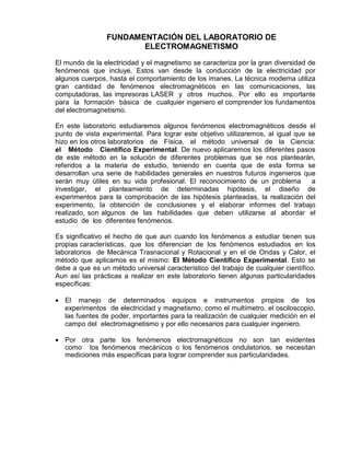 El documento describe el funcionamiento de un generador de Van de Graff, el cual permite obtener altos voltajes para estudiar fenómenos físicos. El generador transporta carga eléctrica de forma continua a una esfera mediante una banda móvil, acumulando carga hasta alcanzar un alto potencial. Al encender el generador, se observa que la esfera emite chispas, mostrando la existencia de un campo eléctrico. Al acercar un electroscopio cargado, este se descarga, indicando la presencia de un