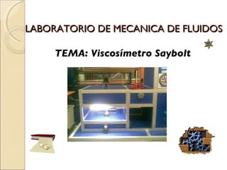 El documento describe un laboratorio de mecánica de fluidos enfocándose en la determinación de la viscosidad de aceite SAE 40 usando un viscosímetro Saybolt y un viscosímetro rotacional. Se detalla el procedimiento experimental, incluyendo los materiales y el análisis de resultados, concluyendo que el aceite SAE 40 tiene un SSU de 1933.4 a 37°C. Además, se determina que una mezcla de harina y agua es no newtoniana tras evaluar el diagrama reológico en el viscosímetro rotacional.