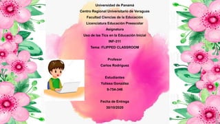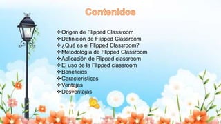 El documento describe el modelo pedagógico de Flipped Classroom. Este método invierte el aprendizaje tradicional llevando la instrucción directa fuera del aula a través de videos u otros materiales, mientras que el tiempo en clase se utiliza para que los estudiantes apliquen los conceptos, trabajen en grupos, y el profesor pueda centrarse más en cada estudiante. El documento explica las etapas, ventajas, desventajas y aplicación práctica de este enfoque de enseñanza.