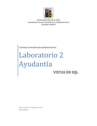 El documento presenta una serie de actividades relacionadas con la creación de vistas en SQL sobre una base de datos de préstamos de libros. Se solicita crear vistas para obtener información sobre estudiantes de determinadas carreras, estudiantes atrasados en la devolución de libros, cantidad de préstamos realizados, libros de editoriales extranjeras, libros en reserva, y prestamos realizados por estudiantes de un campus en particular. También se pide crear vistas sobre la cantidad de estudiantes por carrera, campus y ciudad, así como sobre pré