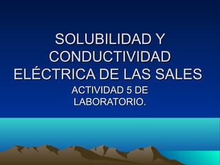 SOLUBILIDAD YSOLUBILIDAD Y CONDUCTIVIDADCONDUCTIVIDAD ELÉCTRICADE LAS SALESELÉCTRICA DE LAS SALES ACTIVIDAD 5 DEACTIVIDAD 5 DE LABORATORIO.LABORATORIO.