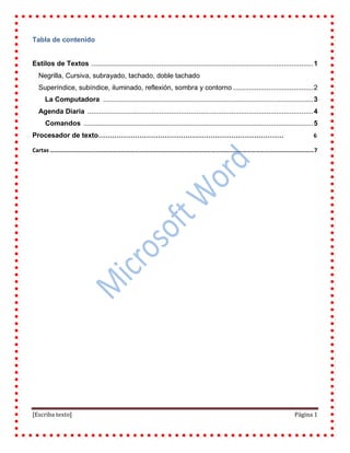 El documento proporciona información sobre las funciones y características de un procesador de texto. Explica que un procesador de texto permite crear y modificar documentos de forma más potente y versátil que una máquina de escribir tradicional. Detalla algunas de las funciones de un procesador de texto como formato de texto, imágenes, guardado de archivos, corrección ortográfica y gramática.