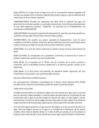Este informe de laboratorio describe los procedimientos y resultados de un análisis limnológico de muestras de agua de diferentes fuentes. Se midieron parámetros físicos, químicos e indicadores biológicos, y se observó el plancton bajo microscopio. Los resultados mostraron varios grados de contaminación, con el agua del río Bogotá y uno de los floreros presentando los niveles más altos basados en características físicas, presencia de microorganismos y valores químicos. El aná