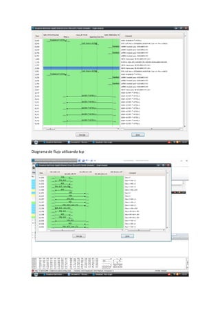 Este documento habla sobre protocolos de red como HTTP, UDP, STP, IPV6 e IPV4 y cómo se pueden usar Wireshark para ver correos de Gmail y mensajes de Messenger. También da instrucciones sobre el formato para un laboratorio en PDF que incluye una portada, procedimientos paso a paso, resultados con capturas de pantalla e impresiones, y una conclusión sobre lo que se aprendió con al menos dos citas bibliográficas.