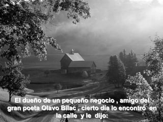 El dueño de un pequeño negocio le pide a su amigo, el poeta Olavo Bilac, que escriba un aviso para vender su casa. Bilac escribe un aviso poético que describe la casa y sus alrededores de una manera encantadora. Meses más tarde, cuando el poeta le pregunta al hombre si ya vendió la casa, el hombre dice que después de leer el aviso se dio cuenta de lo maravillosa que era su casa y decidió no venderla. El cuento enseña que a veces no valoramos lo que tenemos y en cambio buscamos