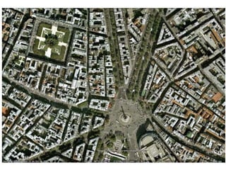 El documento describe la evolución de la ciudad barroca en Europa entre los siglos XVI y XVIII. Se analizan proyectos urbanos en ciudades como París, Nancy, Burdeos y Versalles, donde se trazaron nuevas plazas y ejes que dieron forma a la ciudad. También se describe el trabajo de paisajistas como Le Nôtre, conocido por sus diseños en Vaux-le-Vicomte y Versalles, y del ingeniero Vauban, reconocido por sus innovadores diseños de fortificaciones militares.