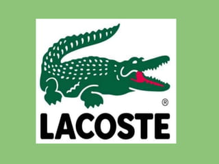 El documento resume la historia de la marca Lacoste. Se fundó en 1933 por el tenista francés René Lacoste. Lacoste tomó su apodo "Crocodile" después de apostar y ganar una bolsa hecha de cocodrilo. Más tarde, bordó un cocodrilo en la solapa de su chaqueta y cuando fundó su marca de ropa le puso su apellido y el logotipo del cocodrilo. El logotipo de la marca es un cocodrilo verde con el hocico rojo que se ha convertido en la imagen distintiva de