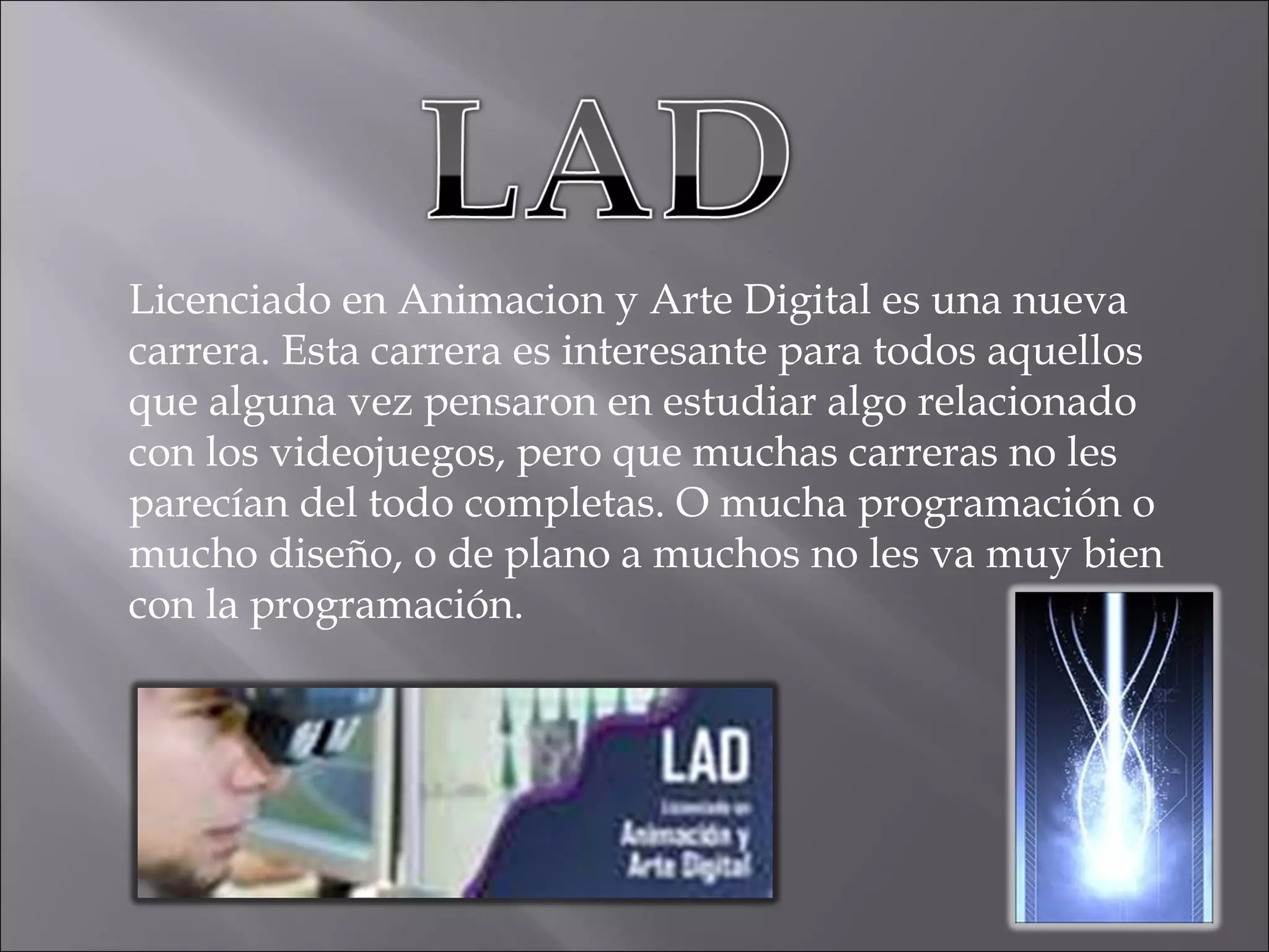 La carrera de Licenciado en Animación y Arte Digital es una nueva carrera interdisciplinaria que combina las artes creativas, el diseño audiovisual y las tecnologías computacionales, lo que la hace atractiva para aquellos interesados en los videojuegos u otras industrias como el cine, la televisión o la publicidad que requieren estas habilidades conjuntas. Esta carrera ofrece oportunidades laborales en industrias del entretenimiento, empresas de animación, mercadotecnia, consultoría y organizaciones educativas.