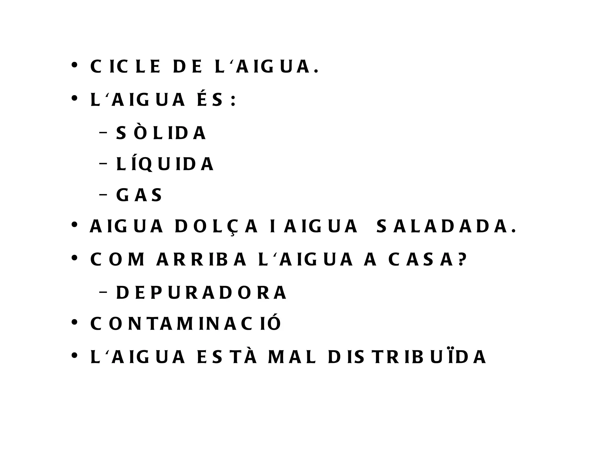 El documento habla sobre el ciclo del agua, incluyendo que el agua puede estar en estado sólido, líquido o gaseoso. Explica que el agua dulce proviene de ríos y es necesaria para la vida, mientras que el agua salada se encuentra en mares y océanos. También menciona posibles problemas como la contaminación del agua y la necesidad de depuración y distribución a través de tuberías para llevar el agua a los hogares.
