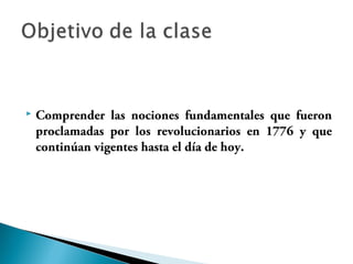 La revolución estadounidense surgió debido al descontento de las 13 colonias británicas en América por los impuestos que les imponía Gran Bretaña sin tener representación en el Parlamento. Luego del Motín del Té en 1773, estalló la guerra en 1775. Aunque inicialmente los británicos tuvieron éxito, las victorias coloniales en Saratoga en 1777 y Yorktown en 1781 llevaron a Gran Bretaña a reconocer la independencia de los Estados Unidos en 1783. El nuevo país se basó en los ideales