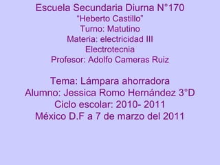 El documento resume las características de las lámparas ahorradoras de luz compacta fluorescente (CFL). Explica que las CFL pueden usarse con casquillos estándar y que emiten luz en diferentes colores de temperatura. También describe otras tecnologías CFL como las lámparas de inducción y las recubiertas con nanopartículas. Finalmente, señala que las CFL contienen mercurio, un contaminante, y que se necesitan mejores leyes para el manejo de residuos de estas lámparas.