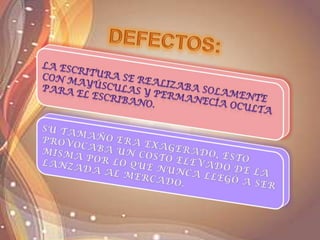 La máquina de escribir fue inventada en 1867 por Christopher Sholes, Carlos Glidden y Samuel W. Soule. La primera máquina de escribir con éxito comercial fue producida por Remington en 1873. Desde finales del siglo XIX hasta el siglo XX, las máquinas de escribir fueron herramientas esenciales en las oficinas. Actualmente, Olivetti es la única compañía que fabrica máquinas de escribir mecánicas, mientras que IBM y Remington son los mejores modelos de máquinas de escribir
