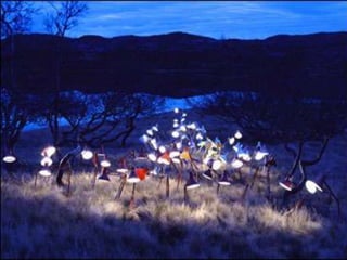 El documento habla sobre el Land Art, un modo de expresión artística que altera el medio natural para producir un efecto en el espectador. Se caracteriza principalmente por instalaciones en el paisaje que interactúan directamente con el medio ambiente modificando una parte del paisaje. Menciona algunos exponentes importantes de este estilo como Christo, Robert Smithson y Agustín Ibarrola.