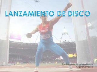 El lanzamiento de disco se originó en Grecia en el siglo VI a.C. y fue representado en la escultura "El Discóbolo". En la actualidad se compite a nivel olímpico desde 1896 para hombres y 1928 para mujeres. El disco debe lanzarse desde dentro de un círculo de 2.5 metros de diámetro siguiendo unas técnicas que incluyen la posición inicial, el giro y el lanzamiento final para obtener la mayor distancia posible.