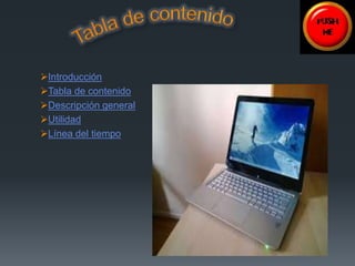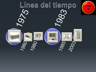Este documento presenta una breve historia de los principales computadores desde 1975 hasta 2004, incluyendo el Altair 8800 de 1975, el Commodore VIC-20 de 1980, el Apple Lisa de 1983, el IBM Personal Computer XT de 1983, el Atari ST de 1985 y el Power Mac G5 de 2004. Describe cada computador y sus características técnicas clave.