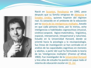 Howard Gardner, nacido en 1943, es conocido por su teoría de las inteligencias múltiples, que plantea que existen al menos ocho tipos de inteligencias. Su trabajo, basado en años de investigación en educación y psicología, ha desafiado el sistema educativo en EE.UU. y aboga por la observación y diagnóstico de estas inteligencias en los alumnos para optimizar su aprendizaje.