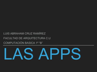 Este documento proporciona información sobre las aplicaciones móviles o "apps". Define qué son las apps, de dónde viene el término, las características principales de una app, lo que se necesita para descargar e instalar una y el costo de las apps. También recomienda cinco aplicaciones útiles para estudiantes de arquitectura.