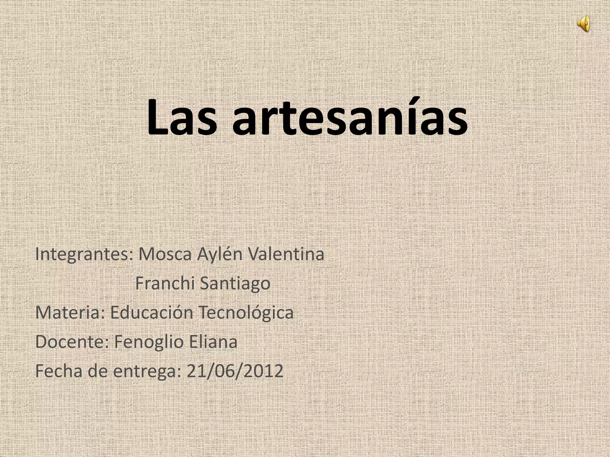 El documento habla sobre las artesanías y la producción artesanal en comparación con la producción industrial. Brevemente describe que la producción artesanal usa energía humana, requiere poco dinero, tiene mercados más pequeños y usa menos recursos renovables, mientras que la producción industrial surgió durante la Revolución Industrial y trajo nuevos bienes de consumo masivo, mayor producción y cambios sociales y ambientales.