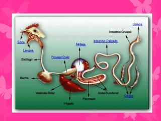 Este documento resume los sistemas de nutrición, respiración y circulación de las aves. Explica que las aves pueden ser clasificadas como fitófagas, zoófagas, necrófagas u omnívoras dependiendo de su dieta y que la forma del pico está relacionada con los alimentos que consumen. Describe que las aves respiran más rápido cuando vuelan y usan sacos aéreos para mejorar la ventilación y reducir el calor. Finalmente, señala que al igual que los mamíferos, las aves tienen