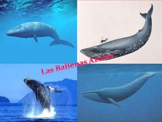 La ballena azul, el animal más grande del mundo, puede medir hasta 108 pies y pesar alrededor de 190 toneladas, consumiendo cerca de 8,000 libras de kril diariamente. Generalmente solitarias, estas ballenas pueden alcanzar velocidades de 30 millas por hora y se encuentran principalmente en los océanos Atlántico y Pacífico. A pesar de los esfuerzos de conservación desde los años 60, su población ha disminuido a aproximadamente 12,000 individuos debido a la caza humana.