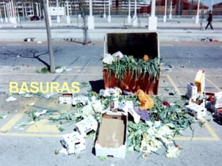 El documento habla sobre los residuos sólidos urbanos: su definición, clasificación, gestión e impactos. Explica que la cantidad y toxicidad de residuos ha aumentado con el crecimiento demográfico y la revolución industrial. También describe las etapas de la gestión como la recogida, transporte y tratamiento, incluyendo el reciclaje, compostaje e incineración. Finalmente, destaca la necesidad de reducir la producción de residuos a través de menor consumo y mayor reutilización.