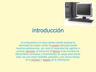 Este documento describe la evolución de las computadoras desde su origen hasta la actualidad. Explica que las computadoras se desarrollaron para contar y registrar información de manera más precisa y rápida. Actualmente, las computadoras digitales pueden realizar miles de millones de operaciones por segundo al verificar múltiples interruptores simultáneamente. El documento también señala que las tendencias futuras incluyen la miniaturización de circuitos y el desarrollo de computadoras paralelas y moleculares.
