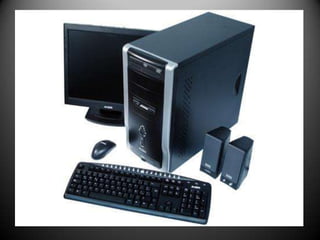 Una computadora es una máquina electrónica que recibe y procesa datos para convertirlos en información útil. Siguiendo la arquitectura de von Neumann, una computadora tiene cuatro secciones principales: la unidad aritmético lógica, la unidad de control, la memoria central y los dispositivos de entrada y salida. Los periféricos comunes incluyen monitores, teclados, ratones, impresoras, escáneres y altavoces.