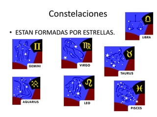 Las constelaciones son agrupaciones convencionales de estrellas cuya posición aparente en el cielo nocturno fue vinculada por trazos imaginarios por antiguas civilizaciones, aunque las estrellas de una constelación no necesariamente están asociadas localmente.