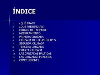 Las cruzadas fueron campañas militares impulsadas por el papado entre los siglos XI y XIII, con el objetivo de liberar Tierra Santa de la dominación musulmana, motivadas por intereses expansionistas y religiosos. A lo largo de estas expediciones, que incluyen la primera hasta la cuarta cruzada, los cristianos lograron conquistas temporales como la de Jerusalén, pero fracasaron en mantener el control a largo plazo, culminando en la caída final de los estados cruzados. Aunque militarmente no fueron exitosas, las cruzadas fomentaron el desarrollo comercial, cultural y político en Europa.