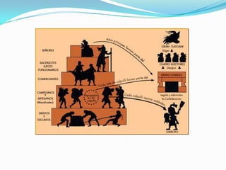 La cultura olmeca fue la primera civilización mesoamericana que se desarrolló entre 1500 a.C. y 400 a.C. en el sur de México. Los olmecas tenían un gobierno teocrático gobernado por reyes-sacerdotes y una sociedad estratificada dominada por una élite sacerdotal-guerrera. Practicaban la agricultura y el comercio, y desarrollaron una escritura jeroglífica, el calendario y otras innovaciones culturales.