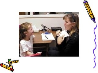 Este documento describe los síntomas y tratamiento de la dislalia. La dislalia es un trastorno de la articulación de los fonemas que se manifiesta a través de sustituciones, distorsiones u omisiones de sonidos. Los síntomas incluyen dificultades en la articulación del lenguaje, efectos en la personalidad como el temor al ridículo, y errores como la sustitución de sonidos por otros más fáciles. El tratamiento implica estimular la producción de sonidos, desarrollar la coordinación motora y