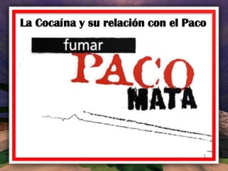 La cocaína y el paco (pasta base de cocaína) son drogas diferentes. La cocaína es más pura y su consumo puede tratarse, mientras que el paco contiene muchas sustancias químicas tóxicas e irreversibles que destruyen al cuerpo rápidamente y son más difíciles de tratar. Aunque la cocaína ha afectado a personas de todos los niveles sociales, el paco se ha vuelto popular debido a su bajo costo y accesibilidad, atrapando a miles en la adicción
